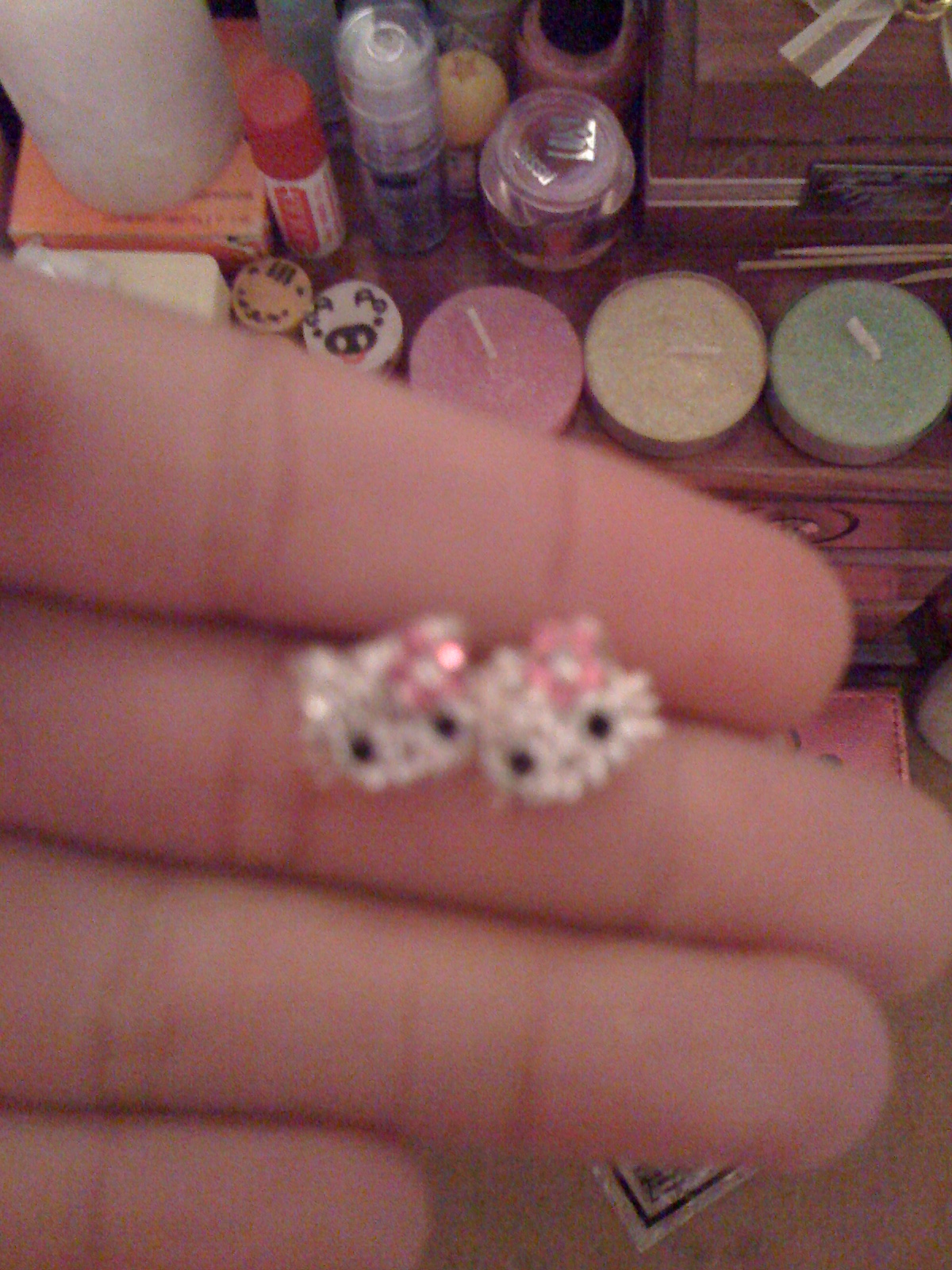 Son unos pendientes de Hello Kitty que compre en un bazar :002: :031: