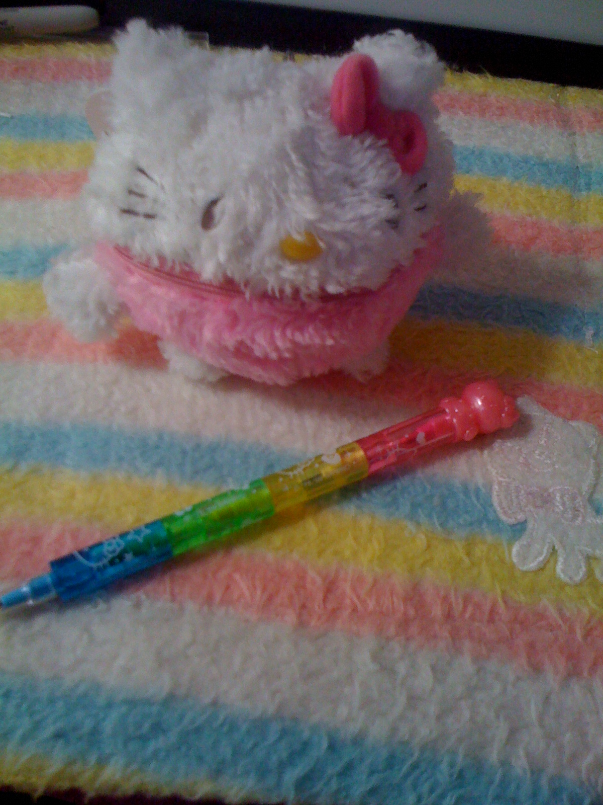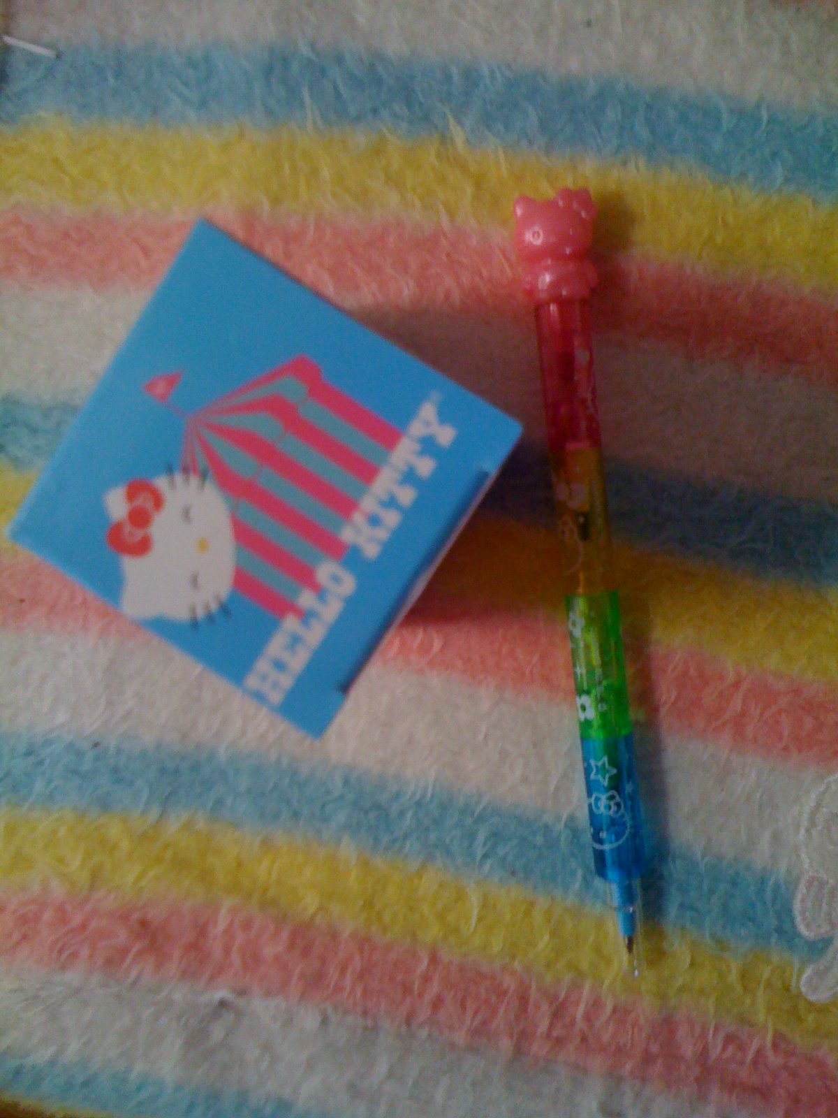 El día de mi cumpleaños Linda me ha regalado un perfume y una extraña pluma de Hello Kitty…