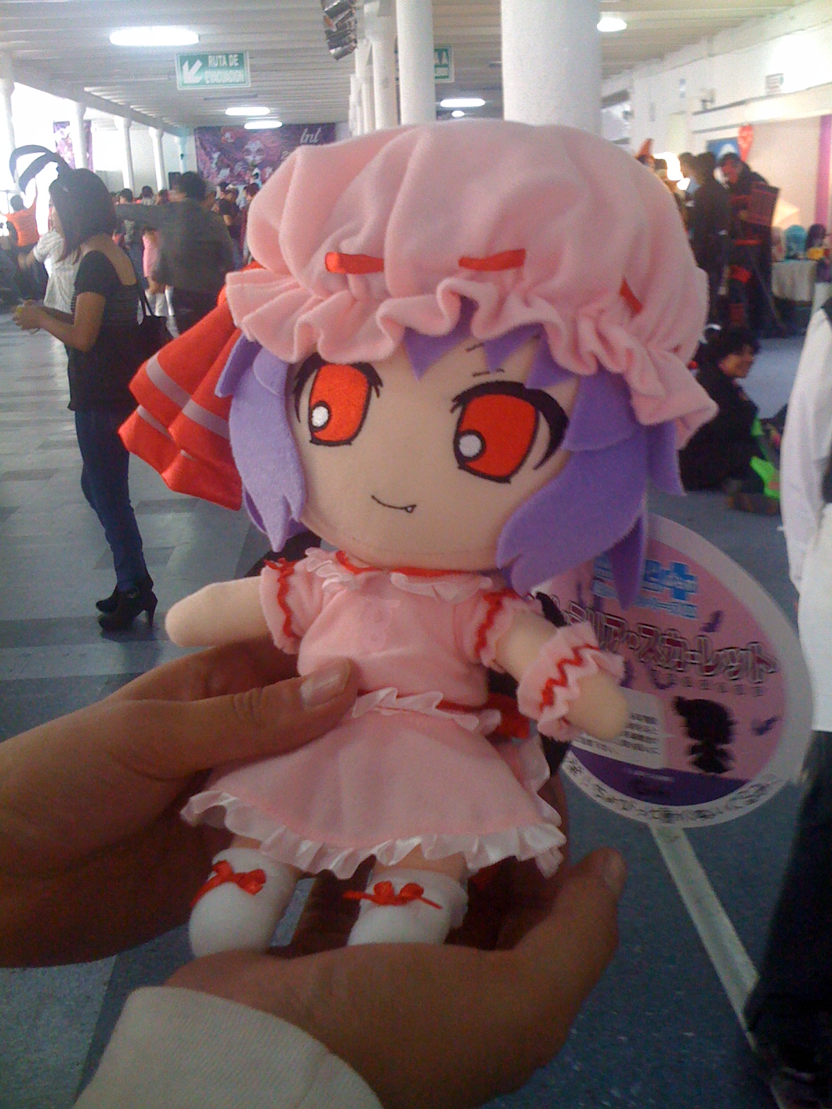 uno de sus amigos llevaba un peluche de Remilia Scarlet, así que no dude en tomarle foto a su nueva adquisición de internet aunque el precio s eme hizo excesivo, creo que vale la pena.:189: